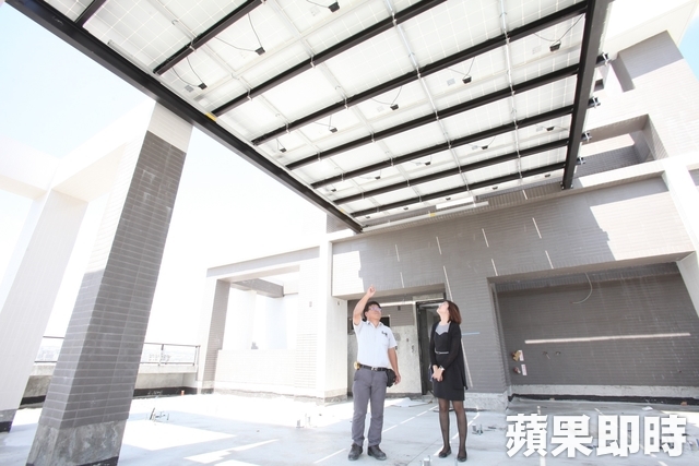 頂樓配備太陽能發電,未來可回售台電作為社區基金,為市場少見作法。陳恒芳攝