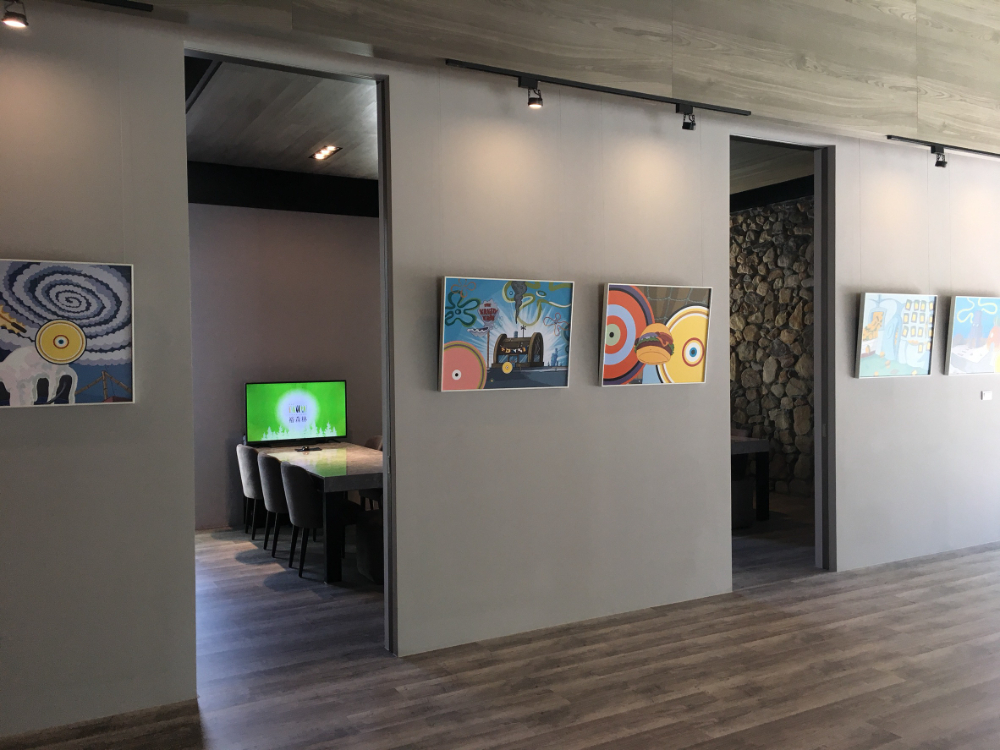 來「裕森林」,看瘋狂海綿如何幽默嘲諷現實世界 似曾相似的色彩,化為各種同心圓,出現於你我很熟悉的場景記憶中…,沒錯,你很快就會驚覺,這正是那位「不上班毋寧死」的海綿寶寶與他的海底世界。 藝術家陳怡潔依據卡漫角色原有的色彩比例,將它抽象化為簡單而繽紛的同心圓,再擷取卡漫中的關鍵影格,抽象與具象交疊,勾起大眾的集體記憶。而卡通中的瘋狂情緒,則藉由畫面的觸電、噴汁、彈跳、狂撒等失控場面來表現。 在卡通影片中,小孩子看的是海綿寶寶的誇張搞笑,大人體會的是瘋狂海綿對現實世界的嘲弄。陳潔儀長期關注媒體與生活的關係,她藉由作品嘲弄現實世界,歡迎您從畫中探索她所留下的蛛絲馬跡。