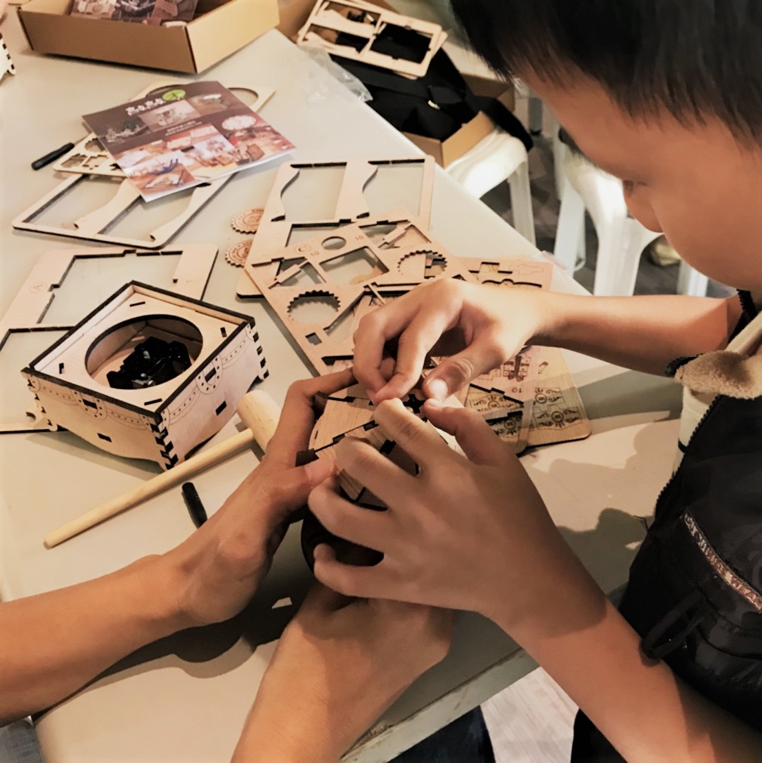 上色、組裝、輕輕搥敲,大家忙得不亦樂乎,興致勃勃地製作自己專屬的音樂盒……